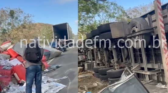 Acidente na RJ-186 deixa carga de roupas espalhada no trecho entre Aré e S. José Ubá