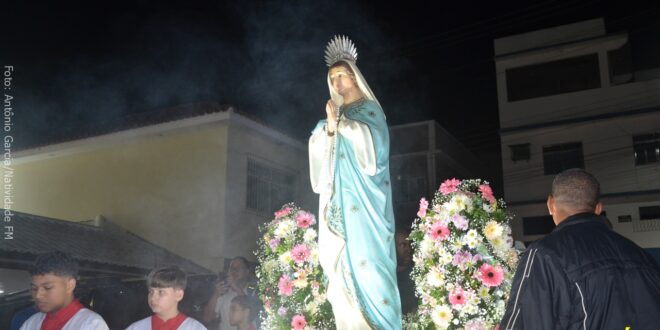 Em ato de união, a procissão luminosa partiu da paróquia irmã – Nossa Senhora das Graças – percorreu as ruas até o Centro, onde ocorreu a queima de fogos de artifício e segunda Missa do dia.