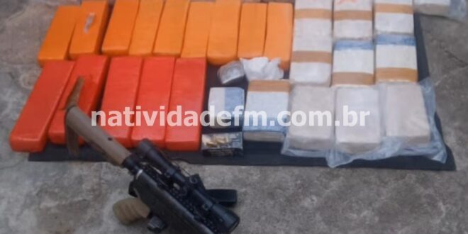 No local, foram encontrados diversos tabletes, totalizando cerca de 21 quilos de pasta base de cocaína, 14 quilos de maconha, um fuzil, além de um veículo, com indícios de clonagem. Um suspeito foi preso e o caso está sendo apresentado na 143 DP.