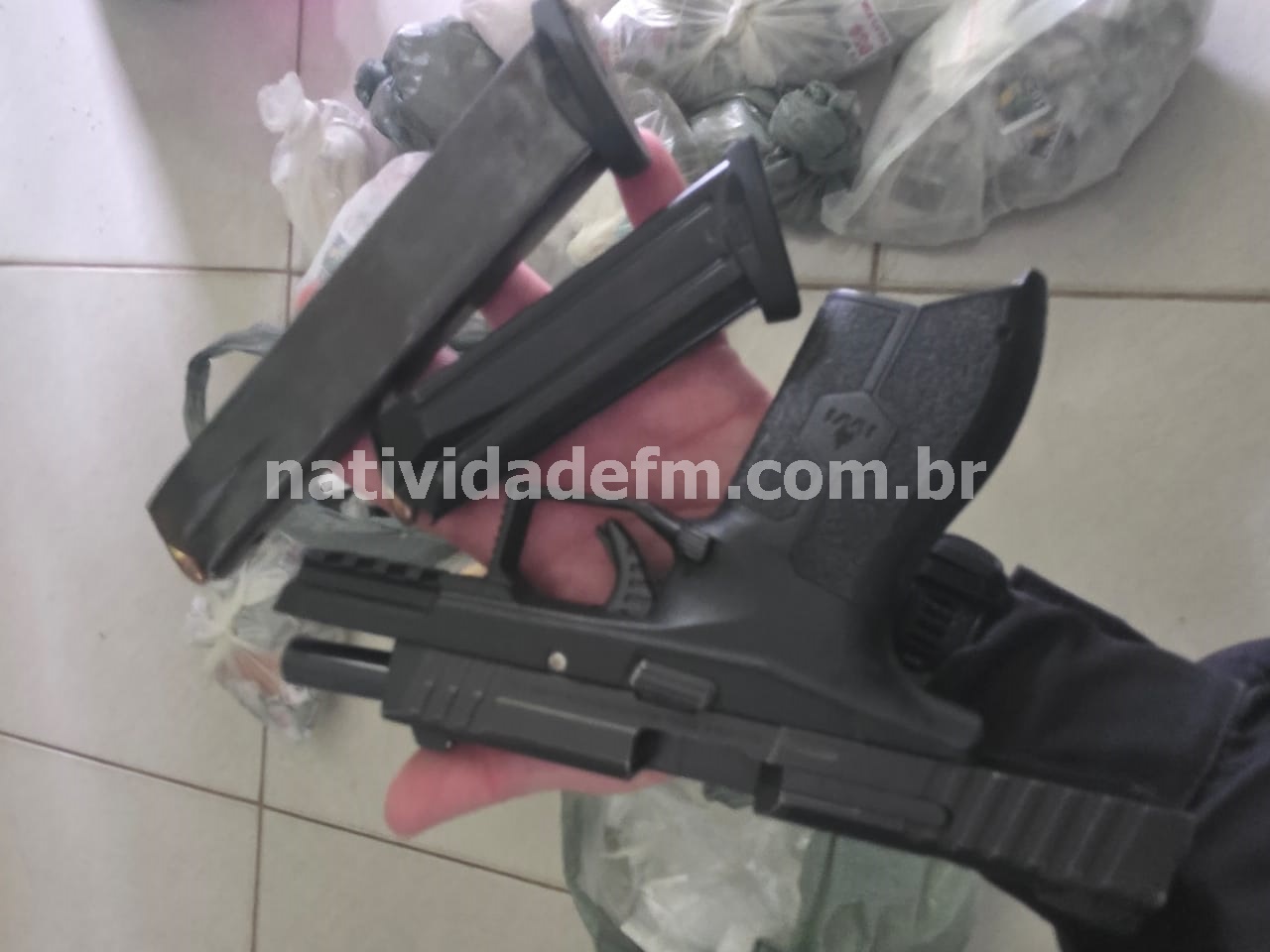 Elemento é preso em Bom Jesus com pistola, carregadores e grande quantidade de drogas