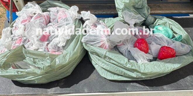 Os agentes foram checar a denúncia e, ao chegarem à localidade indicada, avistaram os suspeitos, que ao notarem a presença policial, empreenderam fuga abandonando o veículo e duas sacolas contendo 438 pinos de cocaína e 220 envelopes de crack, e se evadiram por uma área de mata.