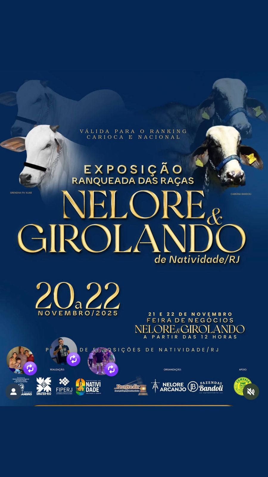 O agronegócio terá destaque com a Exposição Ranqueada das Raças Nelore e Girolando, que acontece de 20 a 22 de novembro de 2025 e é válida para o Ranking Estadual e Nacional, que visa valorizar a genética de alta produtividade e a pecuária de elite. Dentro da programação, nos dias 21 e 22 de novembro, será realizada uma Feira de Negócios Nelore e Girolando a partir das 12 horas, oferecendo oportunidades para produtores e investidores do setor.