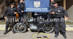 Um elemento foi preso na noite desta terça-feira (28), por porte ilegal de arma de fogo em Natividade. Equipes do 29º BPM verificavam denúncia e realizaram abordagem a um homem, que trafegava em uma moto, na via que liga os bairros Tubiacanga e Bagaceira (Matinha da Vila Cunha). Com ele, os agentes encontraram o revólver calibre com cinco munições. Apresentado …