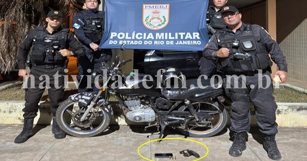 Um elemento foi preso na noite desta terça-feira (28), por porte ilegal de arma de fogo em Natividade. Equipes do 29º BPM verificavam denúncia e realizaram abordagem a um homem, que trafegava em uma moto, na via que liga os bairros Tubiacanga e Bagaceira (Matinha da Vila Cunha).