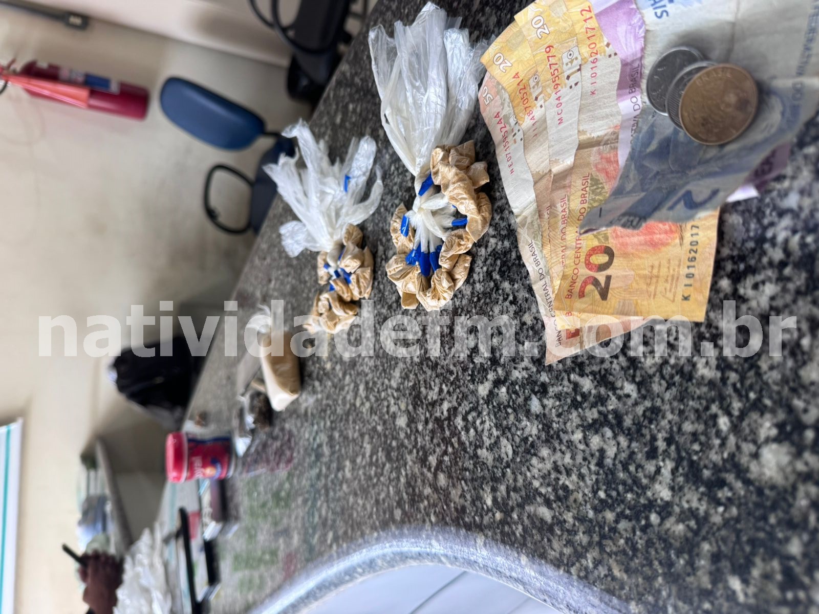 Após buscas, o material – diversos sacolés de cocaína, porção de maconha, material para endolação e balança de precisão – foi localizado. Os PMs ainda apreenderam dinheiro e dois telefones celulares.