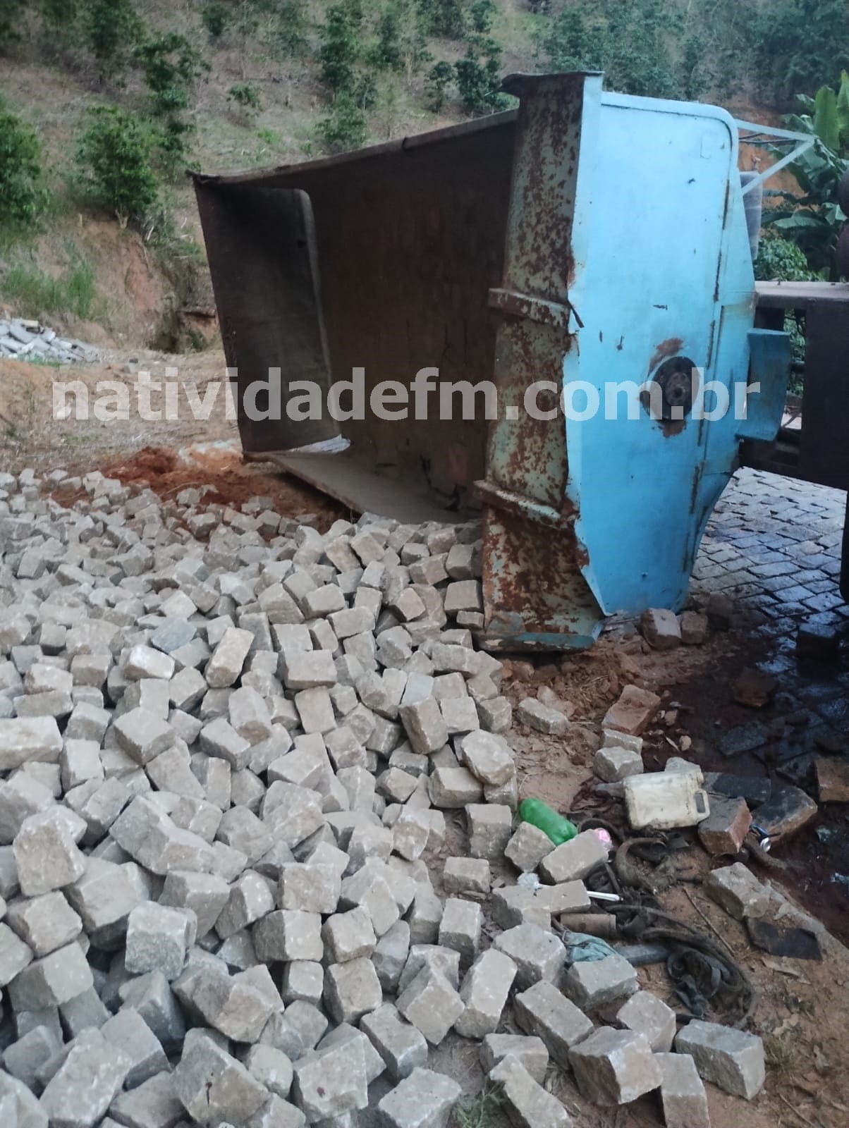 Dois homens ficaram feridos após acidente no final da tarde desta segunda-feira (01), na zona rural de Varre-Sai. De acordo com informações apuradas pelo jornalismo da Rádio Natividdae, o motorista de um caminhão Mercedes Benz modelo 1113 de caçamba, carregado com pedras, perdeu o controle de sua direção em uma área de descida no interior do complexo industrial Patusco, que fica às margens da RJ 214.