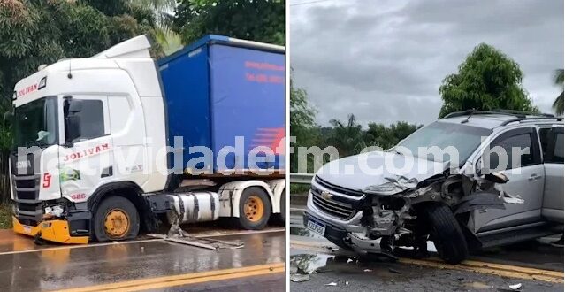 Uma colisão envolvendo um carreta pertencente a uma transportadora e uma caminhonete Chevrolet S10, particular, ocorreu no início da tarde desta terça-feira (20/01), em um trecho da rodovia BR-356, no município de Cardoso Moreira.