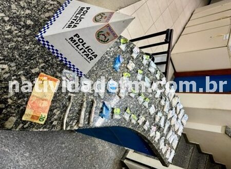 Simultaneamente, no bairro Cidade Nova, um homem de 44 anos foi autuado em flagrante por tráfico de drogas. Ao perceber a aproximação dos militares, o suspeito, que estava agachado em um gramado, arremessou uma sacola azul em direção a um valão. Após a abordagem, os policiais recuperaram a sacola e realizaram buscas no local, encontrando um total de 60 pinos de cocaína e 11 tabletes de maconha, além de uma quantia em dinheiro.