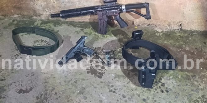 Após o cerco tático, as equipes localizaram o suspeito com armas, materiais e veículos utilizados na criminalidade. Entre os materiais apreendidos estão: