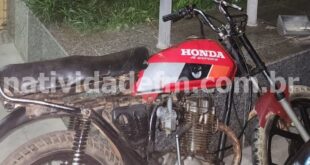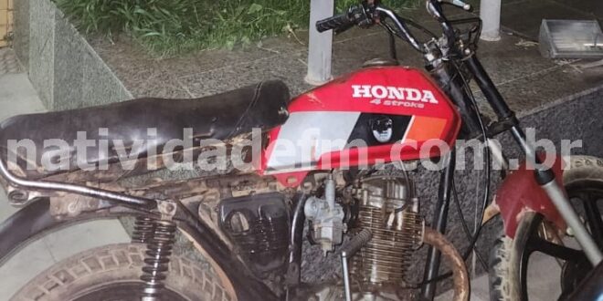 Um moto Honda – modelo antigo sem placa e sinais identificadores – com indícios de adulteração foi a…